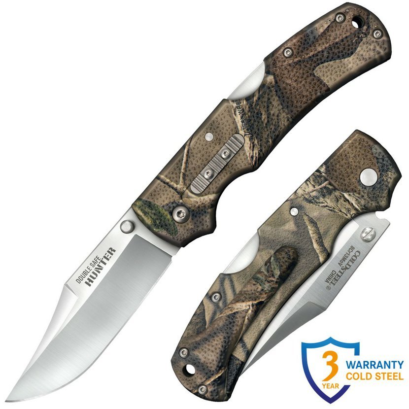 Double Safe Hunter navrhl nožíř Andrew Demko s ohledem na fakt, že pracovní nože jsou silně namáhané a často dochází i k jejich ztrátě. Takový nůž potřebujete často použít v agresivním prostředí, které může poškodit čepel. Ta proto musí být z houževnatějšího materiálu a musí se dobře brousit. Vzhledem k těmto argumentům se Cold Steel rozhodl vytvořit spolehlivý, ale cenově velmi dostupný pracovní zavírák. Tento lovecký nůž je vhodný pro práci jak s rybami, tak menšími zvířaty, jakým je například králík. Při testování nože však nebyl problém ani při bourání losa. Široká čepel nože je vyrobena z nerezové oceli 8Cr13MoV, která po tepelném zpracování vykazuje tvrdost 57-58 Rockwell. Díky tvaru břicha ostří nůž velmi dobře řeže. Rukojeť nože je vyrobena z nylonu se skelným vláknem s označením GFN. Je opatřena hlubokou texturou, aby nůž neklouzal ani v mokrých nebo zablácených rukou. Nůž je pro větší bezpečnost vybaven dvěma pojistkami zavírání. Ostří je zajištěno pojistkou linerlock proti samovolnému zavření a dále sekundárním bezpečnostním mechanismem, který je při zapnutí extrémně odolný vůči nárazům.