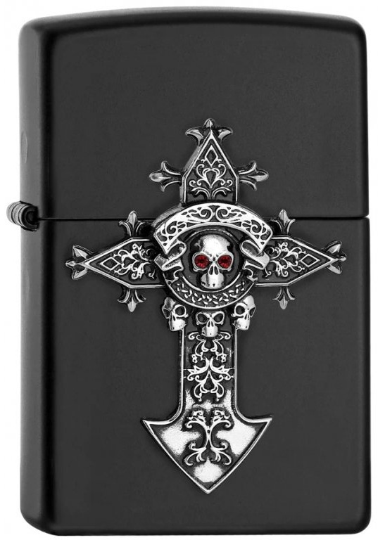 Benzínový zapalovač Zippo Cross with Skull Emblem
