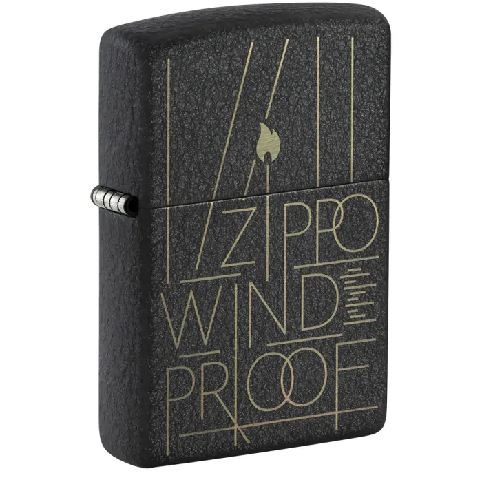 Tento Zippo zapalovač s povrchem Black Crackle® je ozdoben laserováním s moderním nápisem „Zippo Windproof“ umístěným mezi ostrými liniemi a ikonou plamene Zippo. Dodáváno v dárkové krabičce.