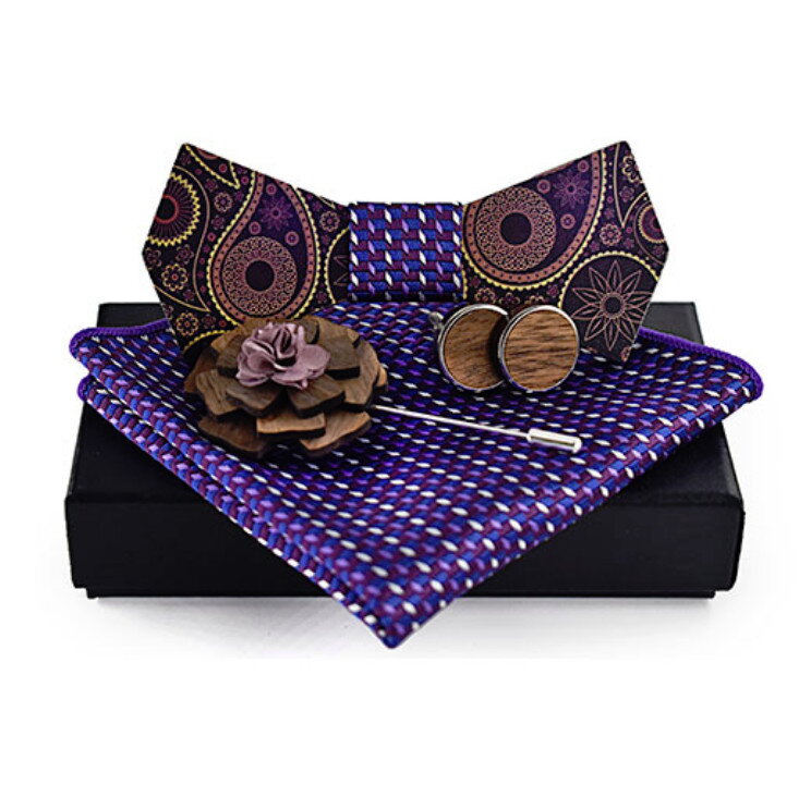 Dřevěný motýlek s kapesníčkem a manžetovými knoflíčky a broží 709088Skladem/K odeslání999 Kč/ ks826 Kč bez DPH