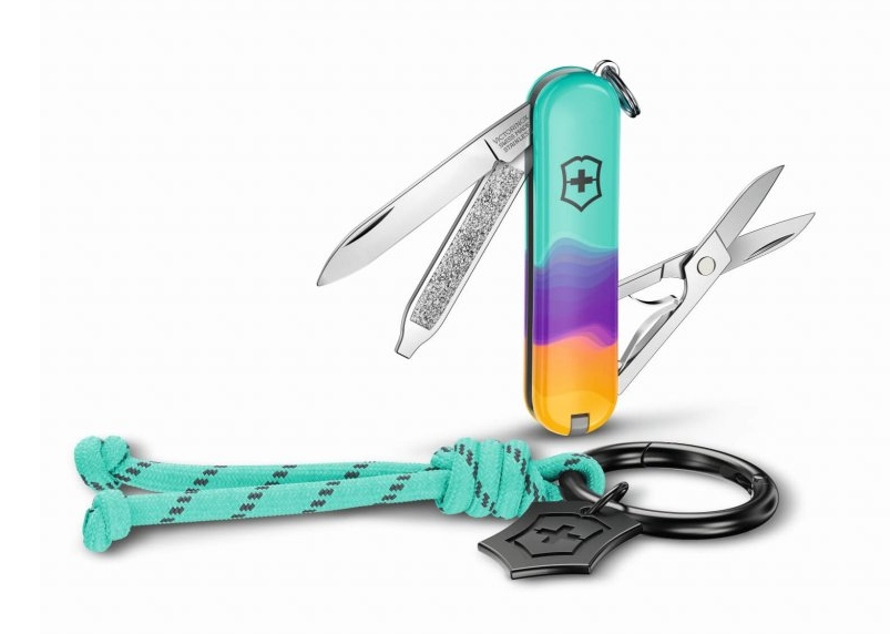 Malý kapesní nůž Sydney Style z kolekce Live to Explore spojuje křehkou ženskost a kompaktní funkčnost. Nůž je doplněn kroužkem na klíče ozdobeným stylovým uzlem s přívěškem ve tvaru loga s typickým švýcarským křížem, vše společně uloženo v elegantní dárkové krabičce. Nůž samotný je vybaven 5 praktickými funkcemi:
