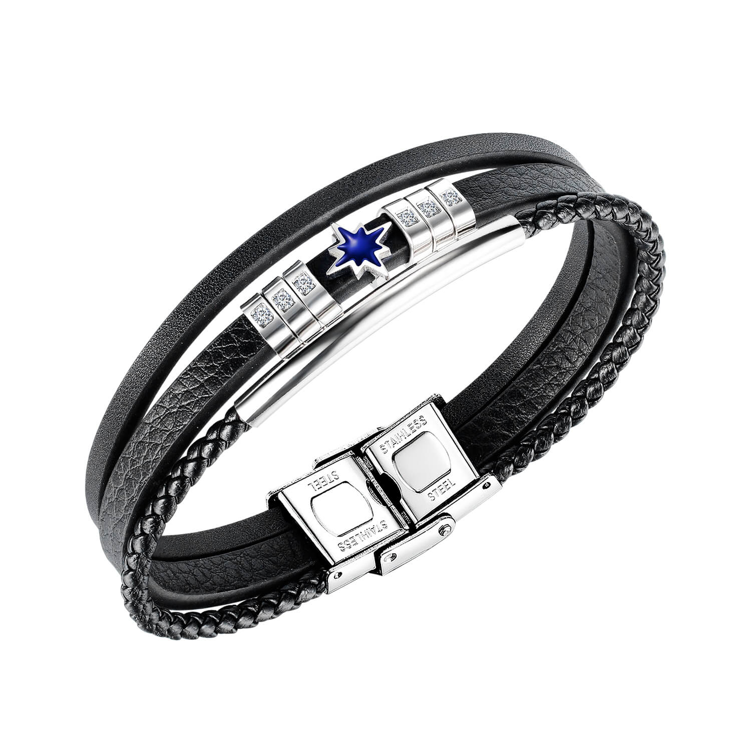 Náramek je vyroben z nerezové chirurgické oceli+Kůže vysoké jakosti s označením 316L, která je nejvhodnější pro výrobu piercingu a šperků. Používá se ve farmaceutickém průmyslu pro výrobu tělních implantátů. Je odolná vůči neoxidujícím kyselinám a důlkové korozi, neohýbá se, neláme se, nemění barvu, na povrchu se netvoří žádné skvrny, je hypoalergenní (nejsou na ni žádné alergické reakce), neuvolňuje žádné niklové soli.