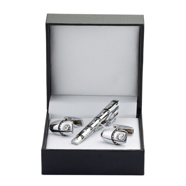 Pánský set obsahuje manžetové knoflíčky a sponu kravaty. Manžetové knoflíčky se nosí pouze ke košilím, které mají zesílené lemy rukávů.