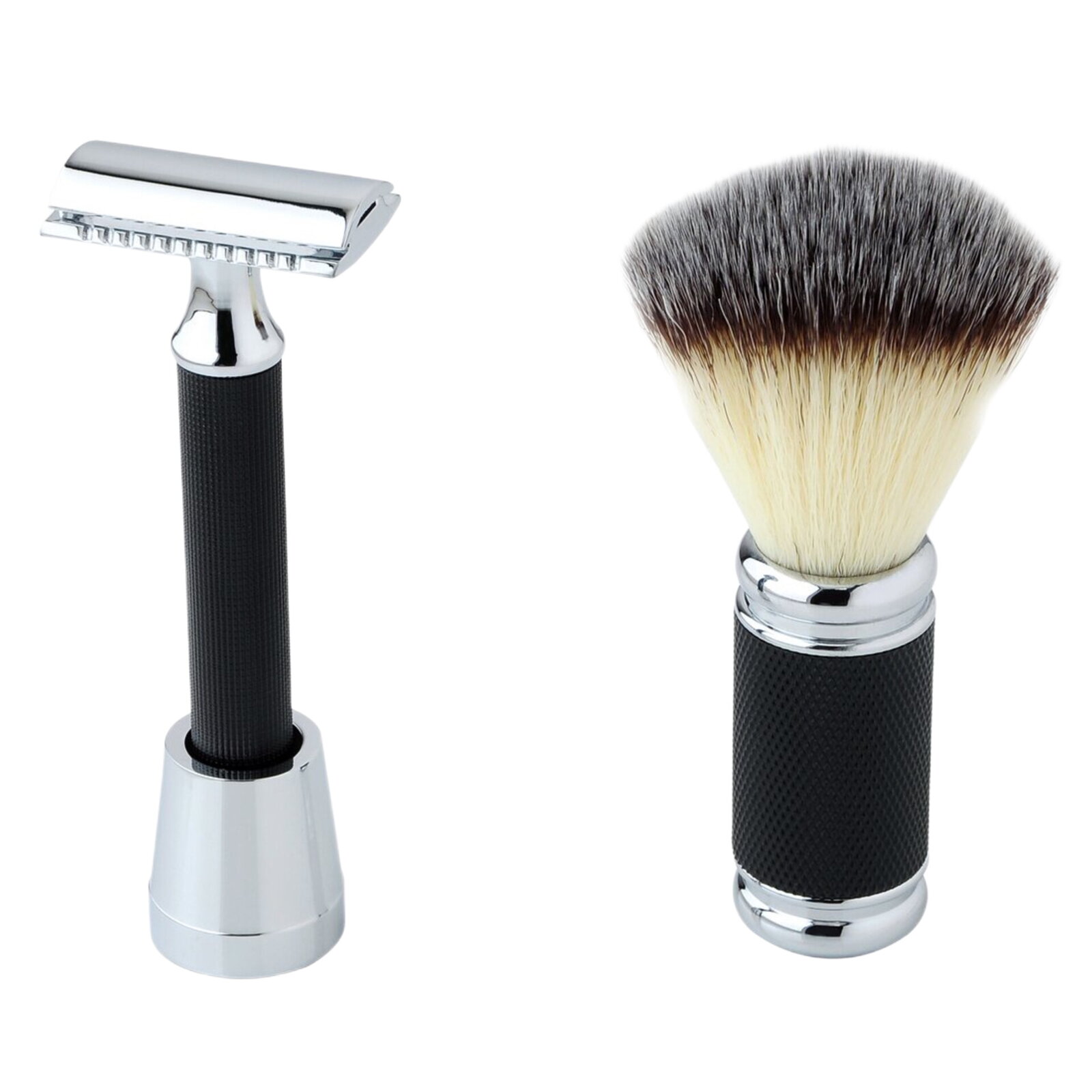 Krásná třídílná sada na holení značky Gaira. Sada se vyznačuje baňatým tvarem rukojeti štětky. Stříbrné kovové části jsou vyrobeny z mosazi a jsou pochromované nebo poniklované. Štětka je vyrobena ze syntetických štětin. Je určena pro všechny, kteří mají při přípravě na holení rádi masážní efekt.