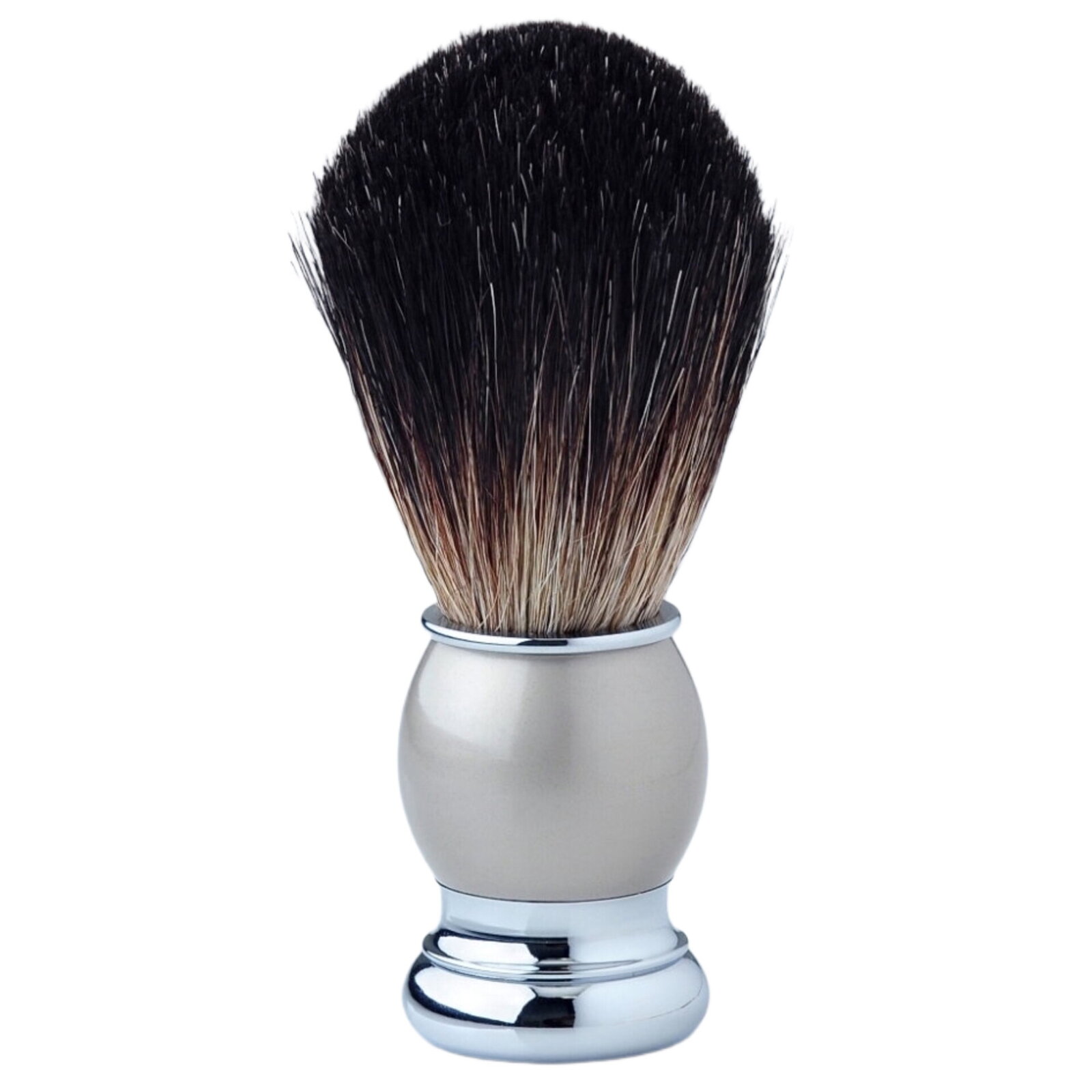 Štětka na holení z jezevčích vlasů Black Badger a s kovovou rukojetí. Štětka je určena všem, kteří ocení masážní efekt při přípravě na holení.