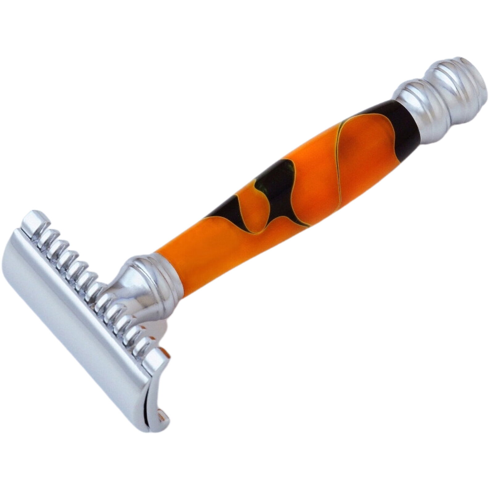 Elegantní holicí strojek na klasické žiletky. Díky propracovanému designu se strojek příjemně drží. Kovové díly jsou vyrobeny z mosazi a pochromované. Hlava strojku je šroubovací, s plnou lištou, která je vhodná pro každodenní holení.