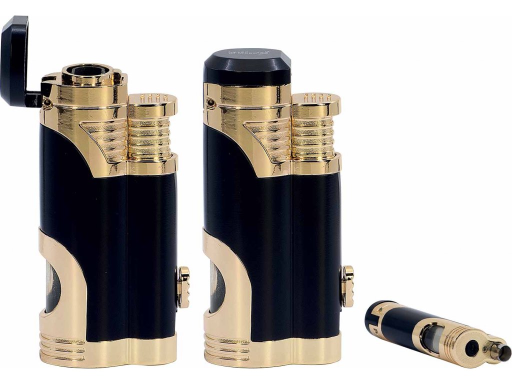 Plynový zapalovač Lucca di Maggio se dvěma turboplameny, vhodný pro připalování doutníků.